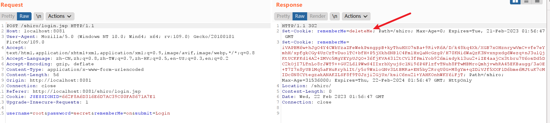 特征:登录返回包中在Set-Cookie字段中出现rememberMe=deleteMe,可能有Shiro反序列化漏洞